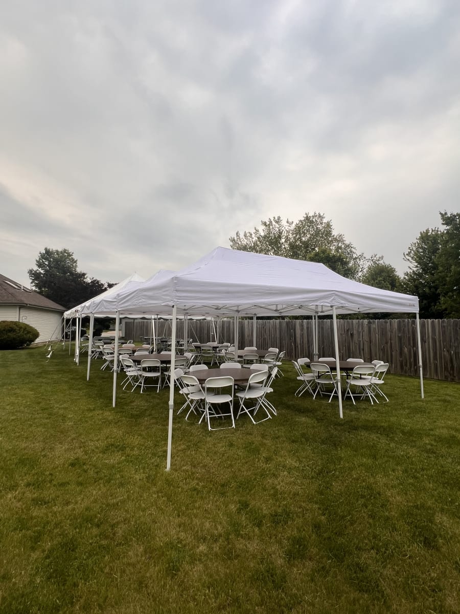 We specialize in tent, table, and chair rentals. Our inventory is always expanding! Don't see exactly what you're looking for? Fill out a form or give us a at 815-216-4121 and let us see if we can help make your vision come to life!